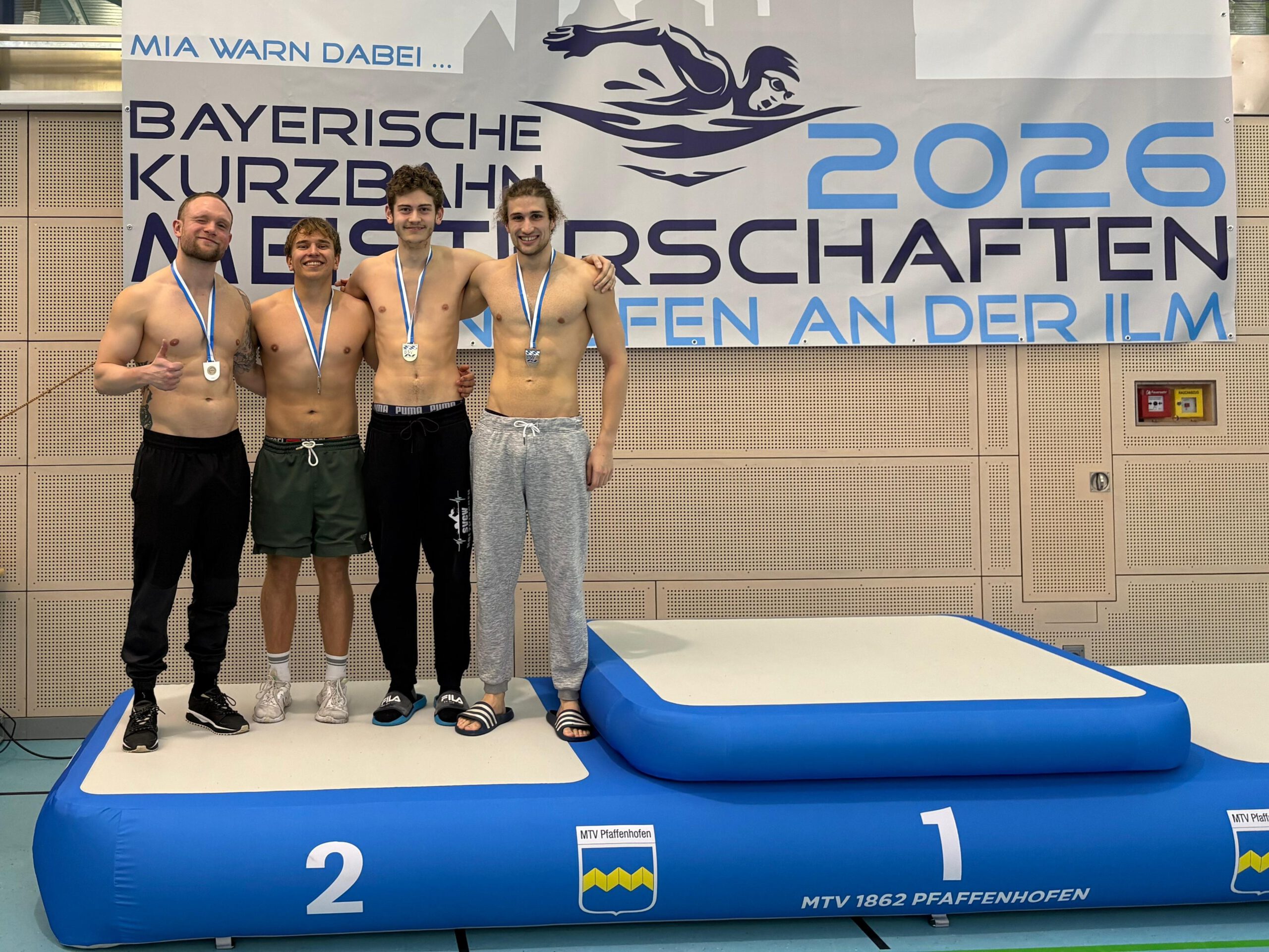 Am 14. März 2026 fanden in Pfaffenhofen die Bayerischen Kurzbahnmeisterschaften der Masters mit internationaler offener Masterswertung statt. Insgesamt 65 Mannschaften gingen an den Start – und unser Team zeigte eine beeindruckende Gesamtleistung. Mit zahlreichen Podestplätzen und starken Zeiten erreichten wir am Ende einen hervorragenden 11. Platz in der Mannschaftswertung.